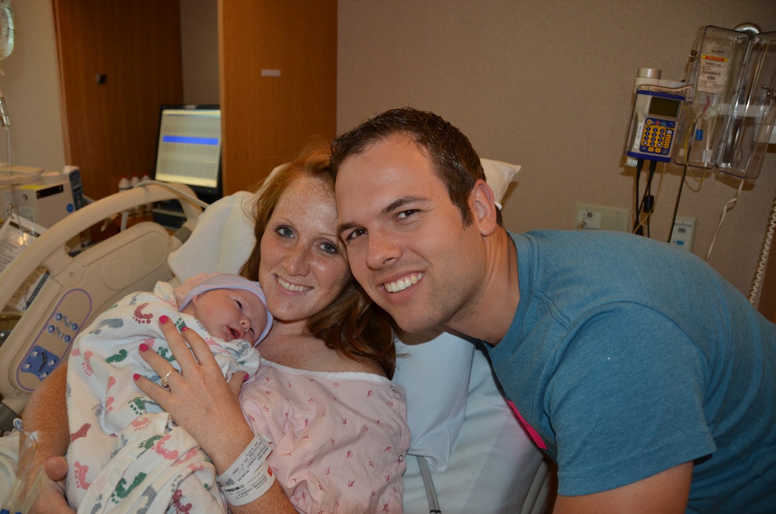We weren't sure what day it would be since the inducement was technically an elective. Others were taken before me as priority cases, so for two days it was stressful being on constant standby. Wednesday morning they told me to come on in, so I ran out the door and headed to the hospital. I checked in at 8am and was on petocin by 8:30. Ryan arrived shortly after since he took care of Brennan while I was checking in. Epidural was in by 10:30 or so and we completely relaxed until around 2:45pm when it was time to start the pushing process. It was pretty difficult since she was positioned face up, but a half an hour later, she was in my arms! All 9 pounds 2 oz and 21.25 in long. We couldn't be more thrilled and with her!